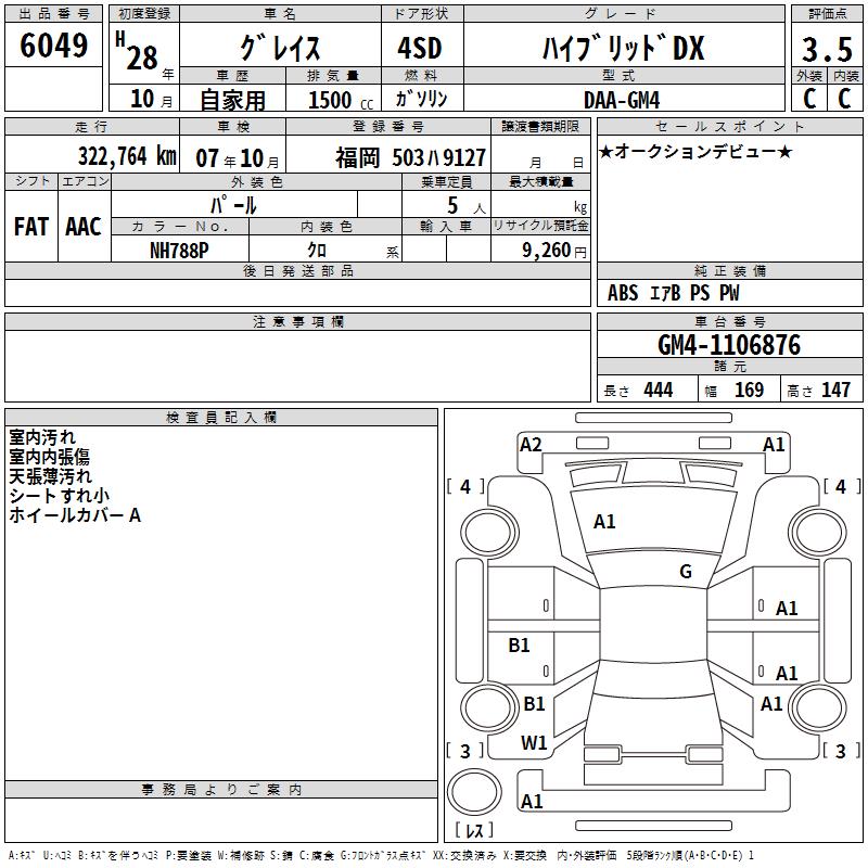 HONDA GRACE - лот 6049