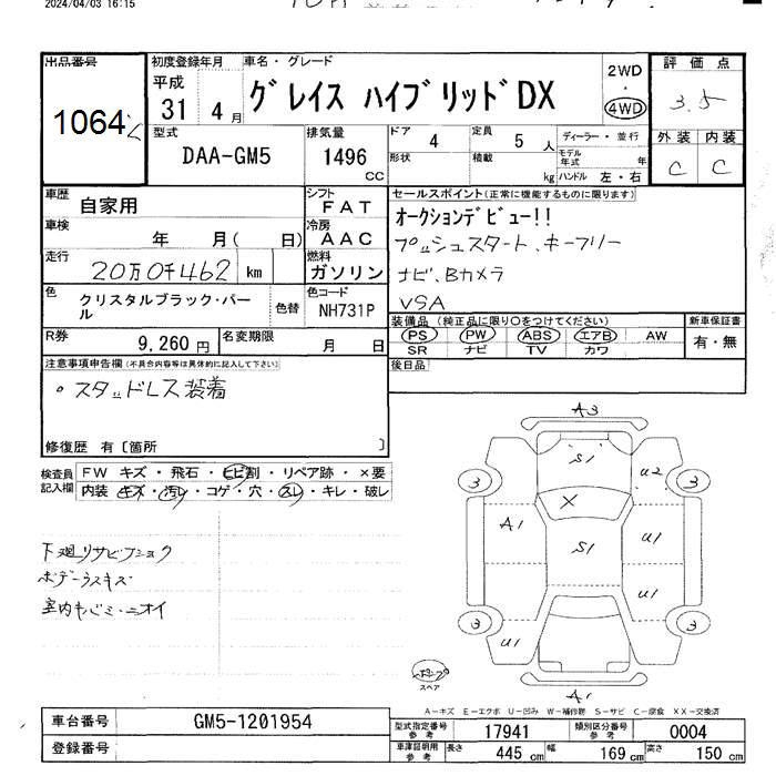 HONDA GRACE 4WD hybrid DX - лот 1064