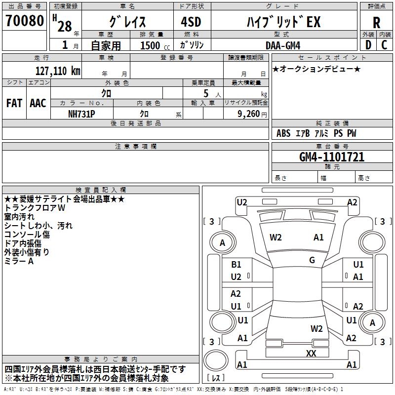 HONDA GRACE HYBRID EX - лот 70080