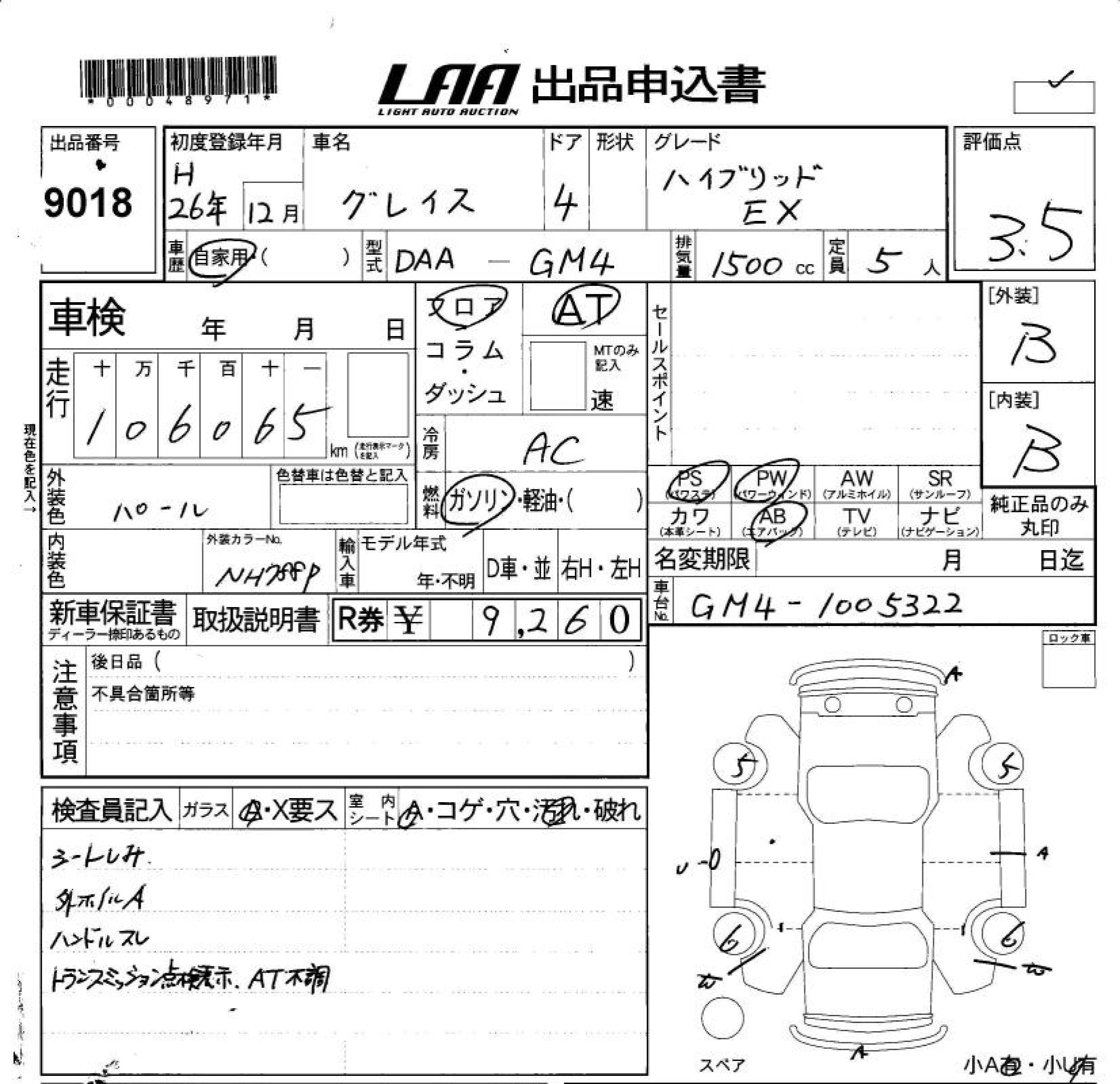 HONDA GRACE HYBRID EX - лот 9018