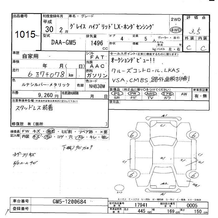 HONDA GRACE 4WD HYBRID LX HONDA SENSING - лот 1015