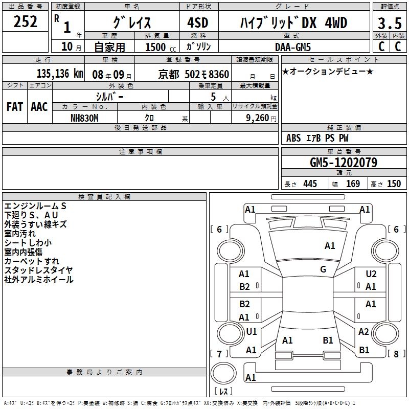 HONDA GRACE HYBRID DX 4WD - лот 252