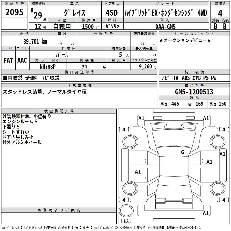 HONDA GRACE HYBRID EX HONDA SEN4WD - лот 2095