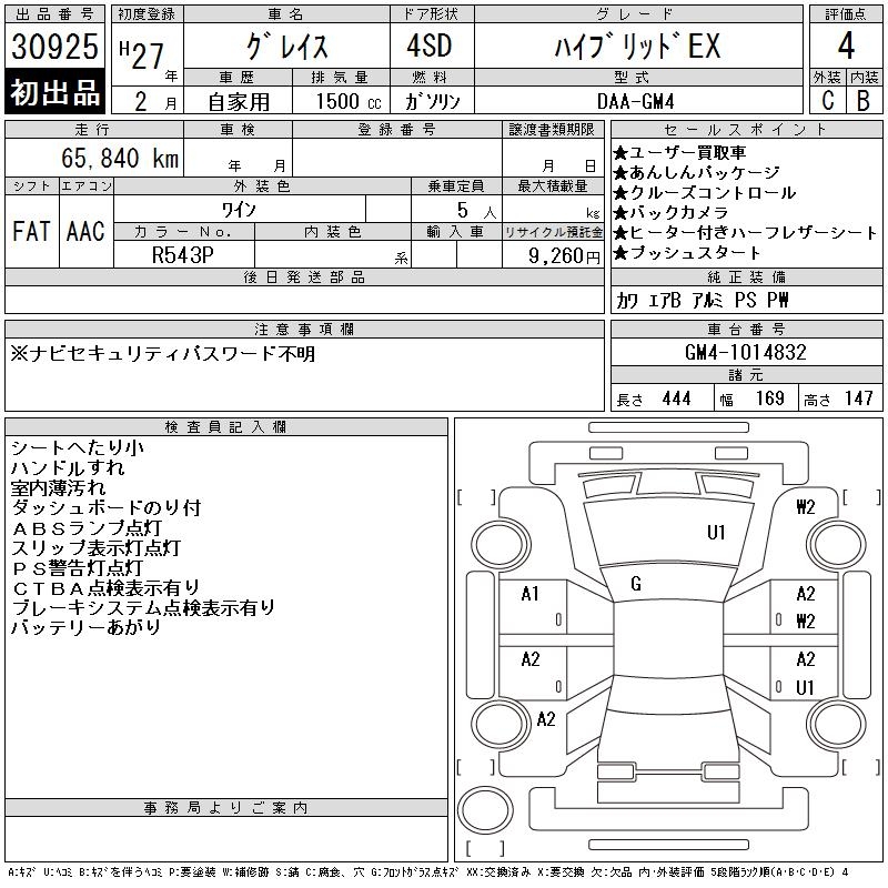 HONDA GRACE HYBRID EX - лот 30925