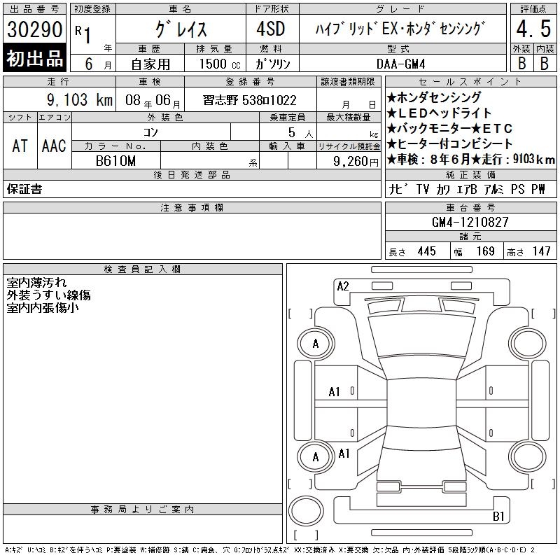 HONDA GRACE HYBRID EX HONDA SENSING - лот 30290