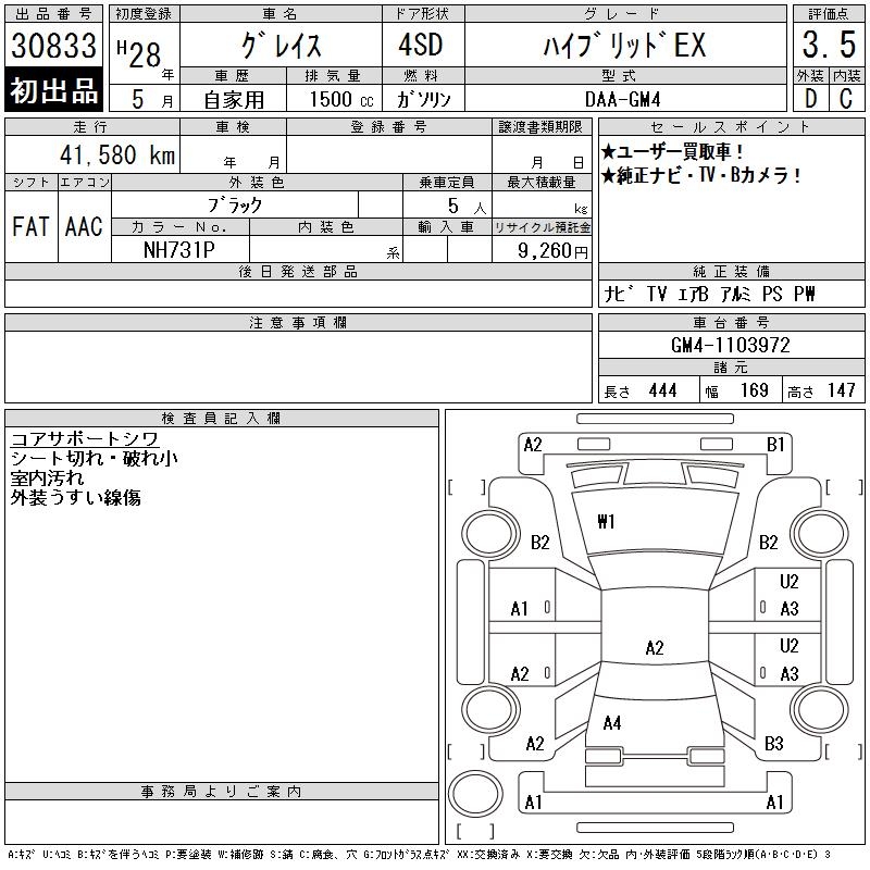HONDA GRACE HYBRID EX - лот 30833