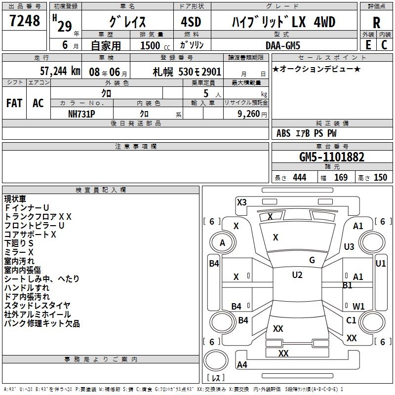 HONDA GRACE HYBRID LX 4WD - лот 7248