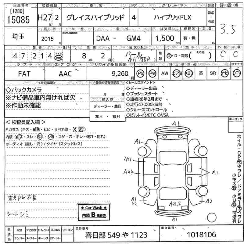 HONDA GRACE HYBRID LX - лот 15085