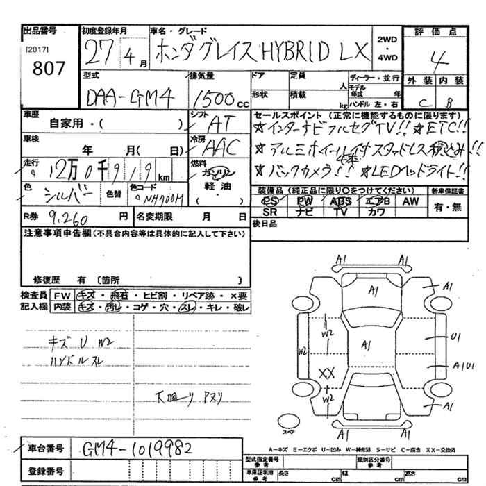 HONDA GRACE - лот 807