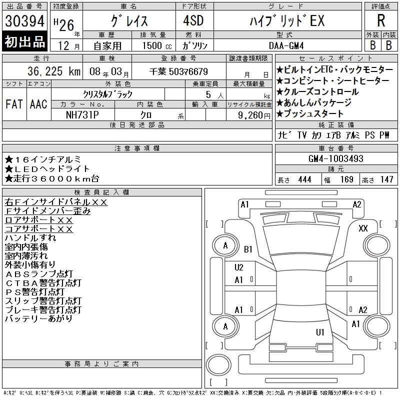 HONDA GRACE HYBRID EX - лот 30394