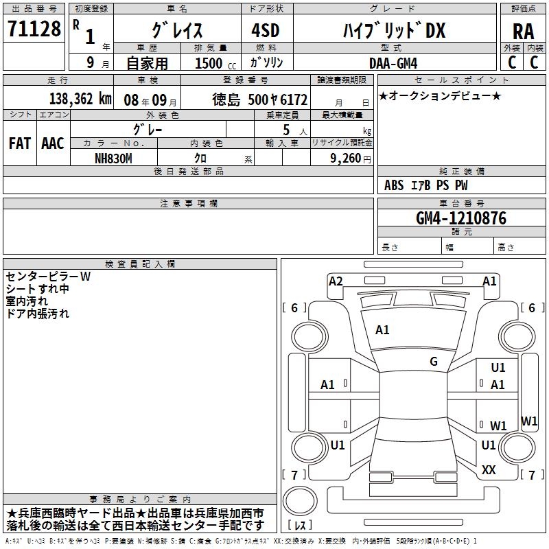 HONDA GRACE HYBRID DX - лот 71128