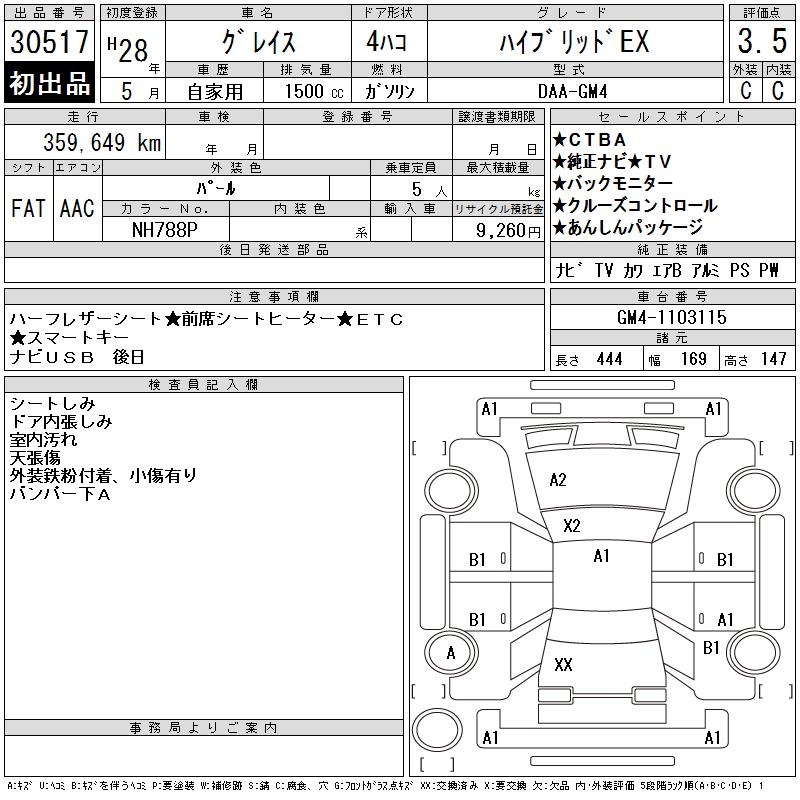 HONDA GRACE HYBRID EX - лот 30517