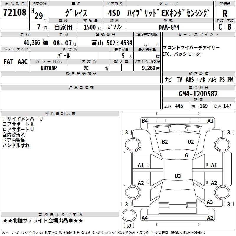 HONDA GRACE HYBRID EX HONDA SENSING - лот 72108
