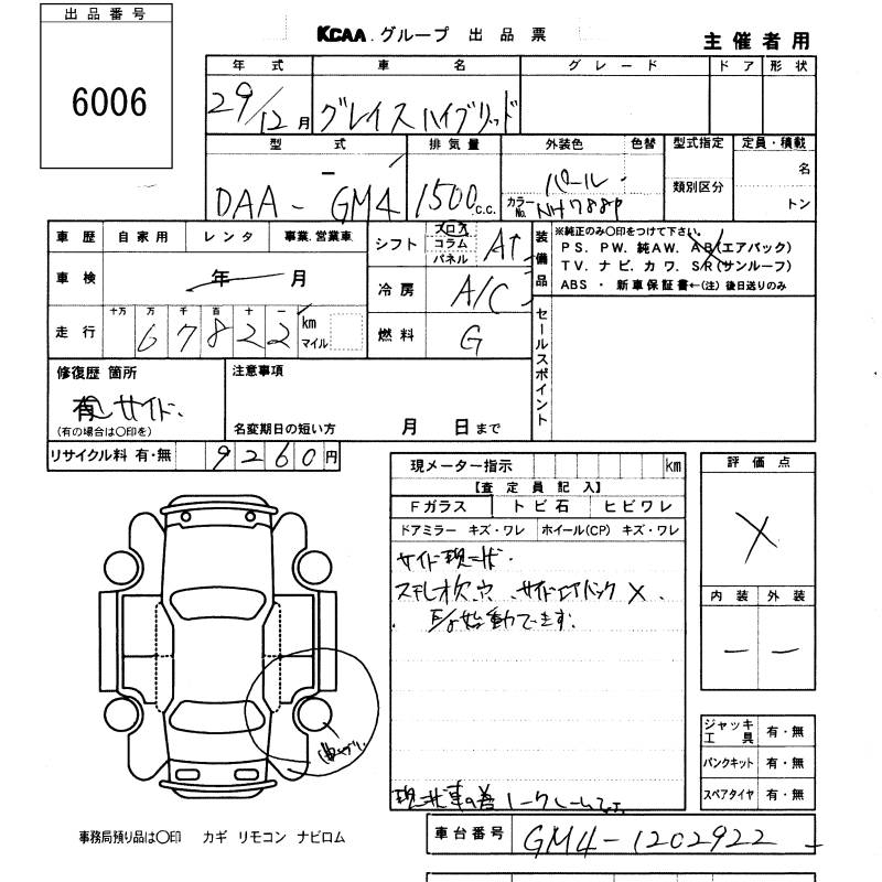 HONDA GRACE HYBRID - лот 6006