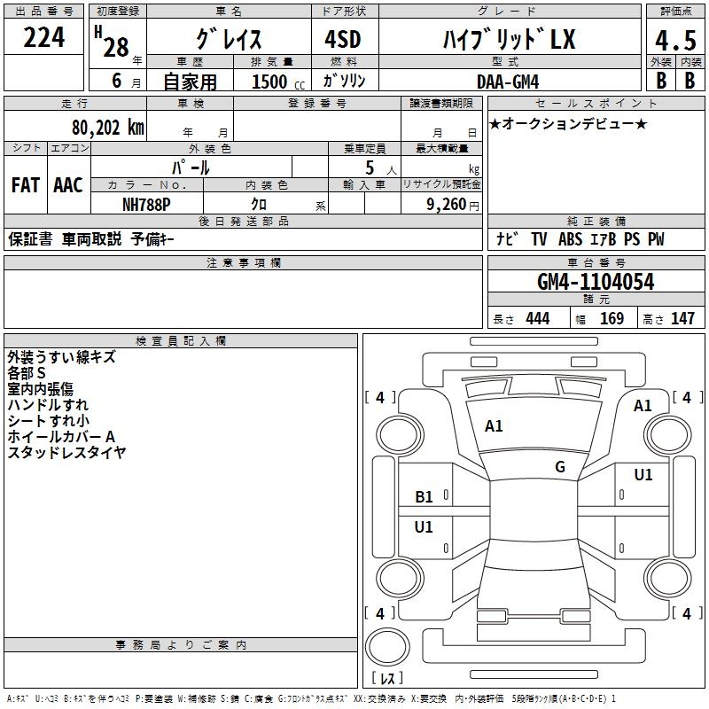HONDA GRACE HYBRID LX - лот 224