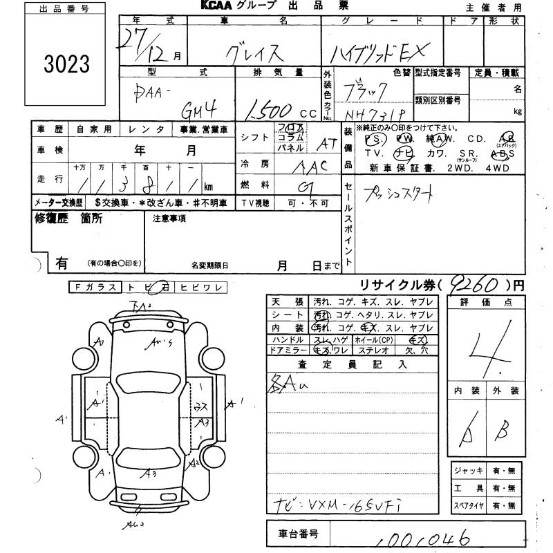 HONDA GRACE - лот 3023