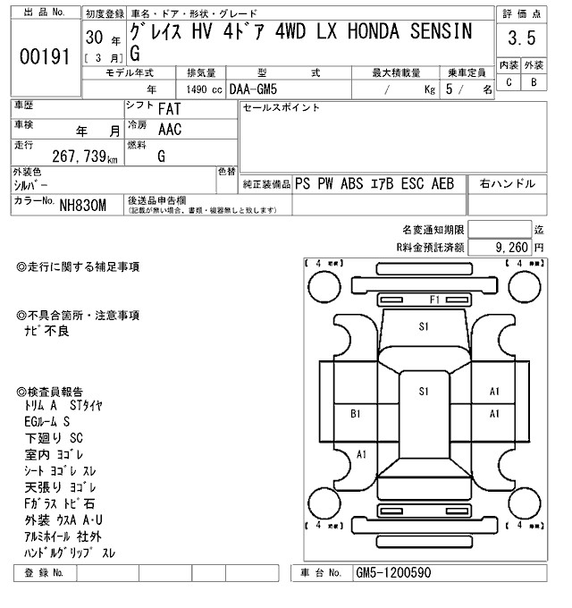 HONDA GRACE - лот 191