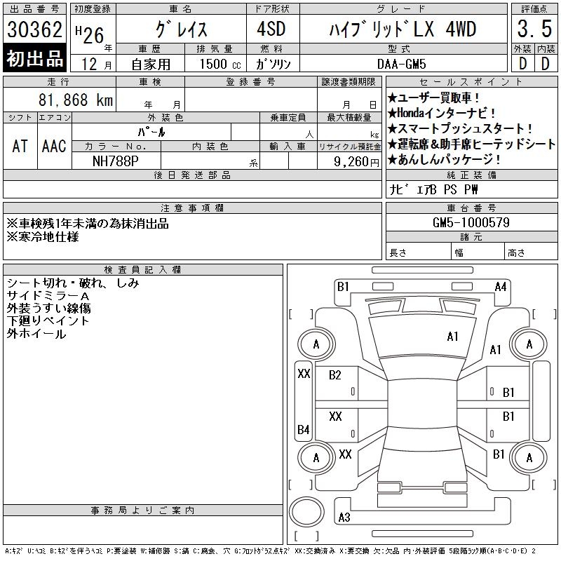 HONDA GRACE HYBRID LX 4WD - лот 30362