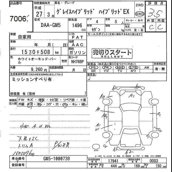 HONDA GRACE 4WD HYBRID EX - лот 7006