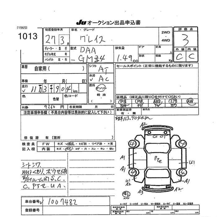 HONDA GRACE - лот 1013