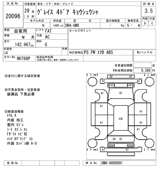 HONDA GRACE TRAINING CAR - лот 20096