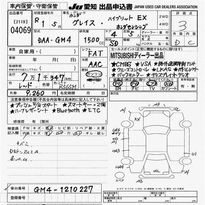 HONDA GRACE HYBRID EX HONDA SENSING - лот 4069