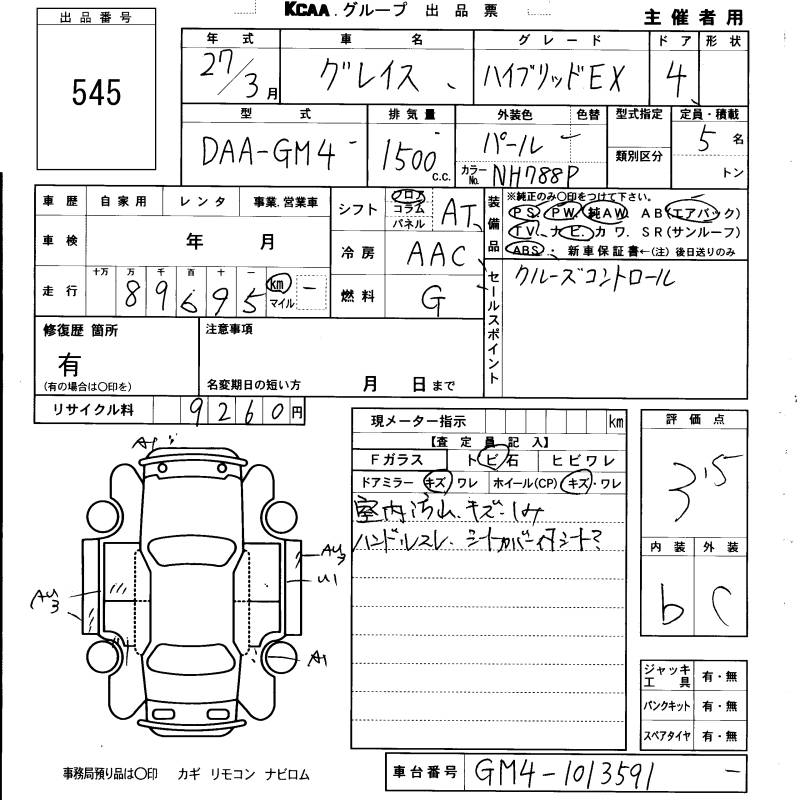 HONDA GRACE HYBRID EX - лот 545