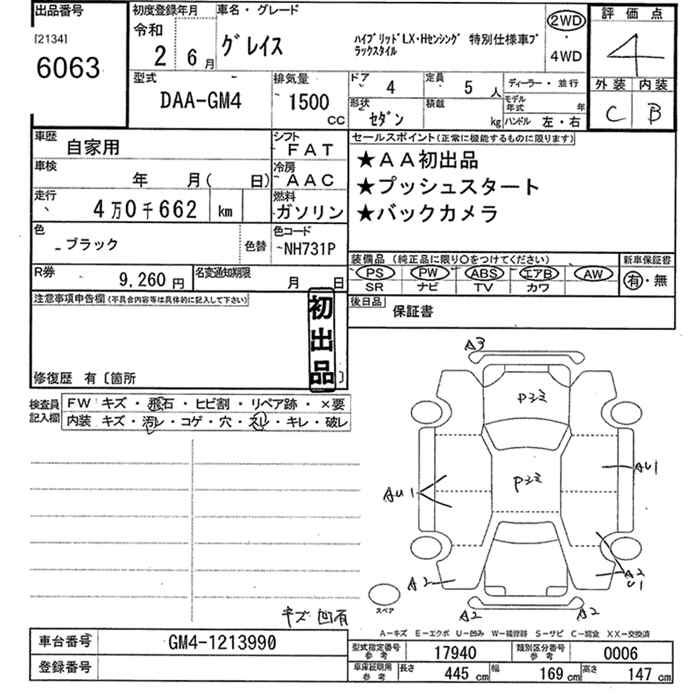 HONDA GRACE HYBRID LX HONDA SENSING BLACK STYLE - лот 6063