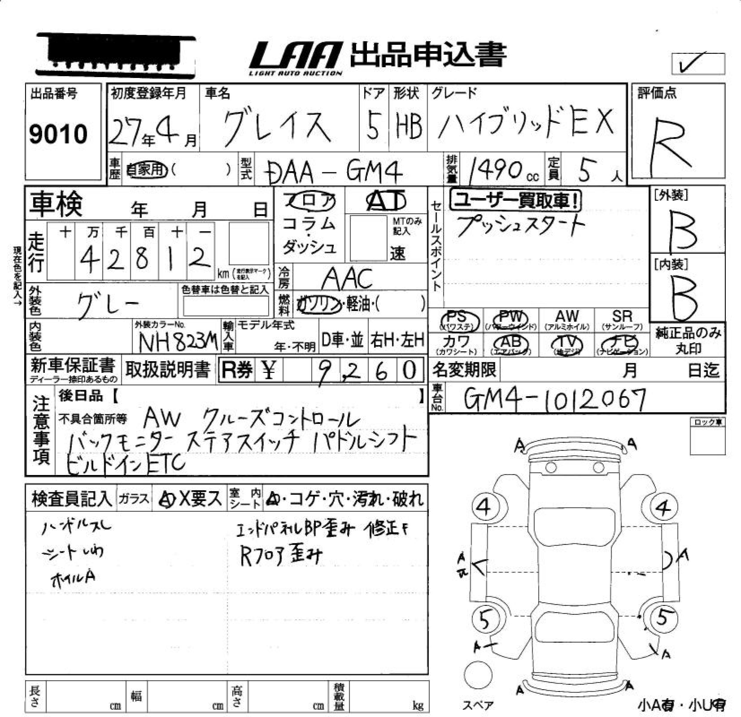 HONDA GRACE HYBRID EX - лот 9010