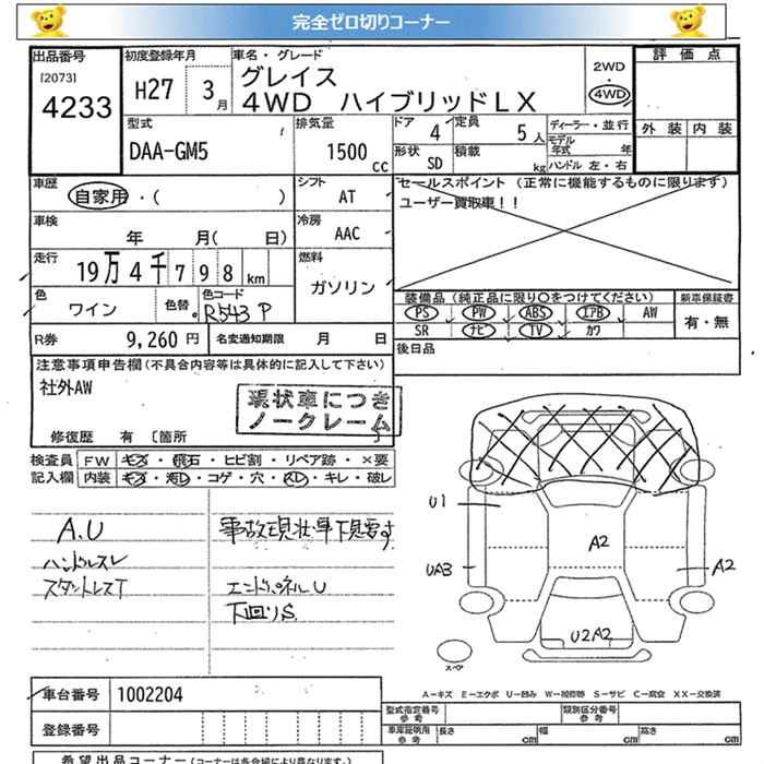 HONDA GRACE 4WD HYBRID LX - лот 4233