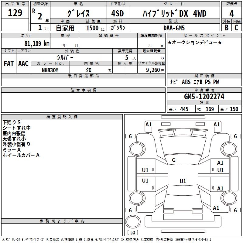 HONDA GRACE HYBRID DX 4WD - лот 129