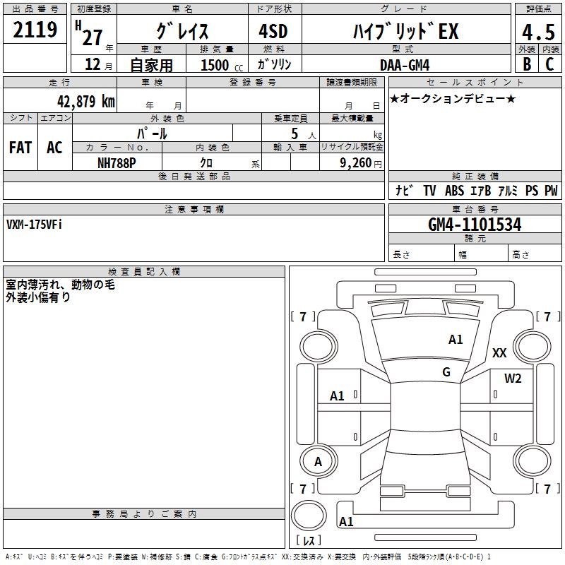HONDA GRACE HYBRID EX - лот 2119