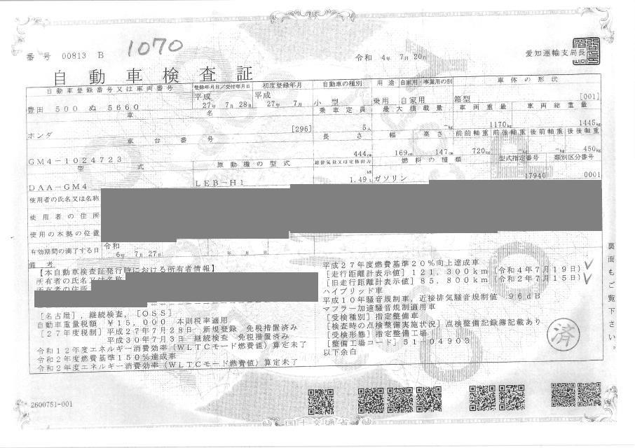HONDA GRACE - лот 1070