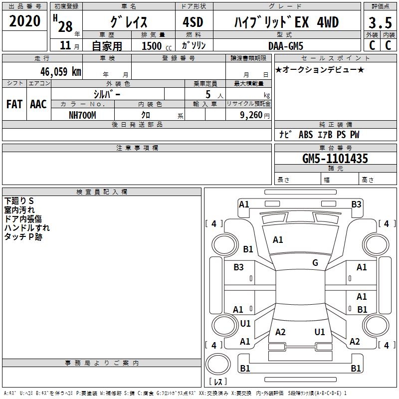 HONDA GRACE HYBRID EX 4WD - лот 2020