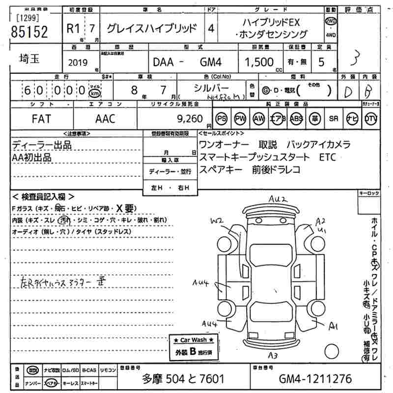 HONDA GRACE HYBRID EX* HONDA SENSING - лот 85152