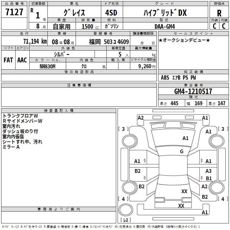 HONDA GRACE HYBRID DX - лот 7127