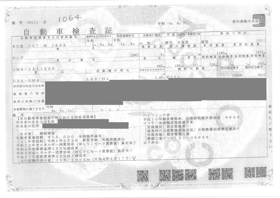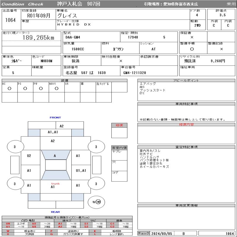 HONDA GRACE - лот 1064