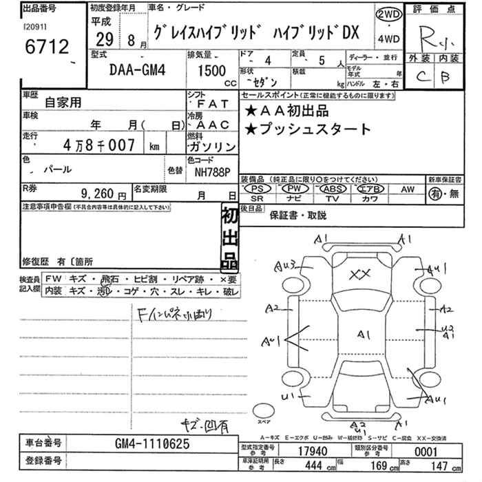 HONDA GRACE hybrid DX - лот 6712