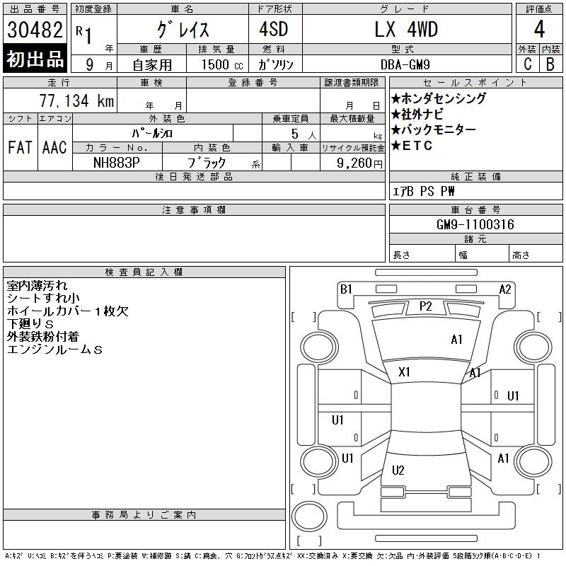 HONDA GRACE LX 4WD - лот 30482
