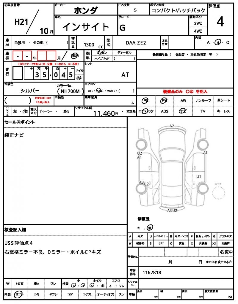 HONDA INSIGHT - лот 10818