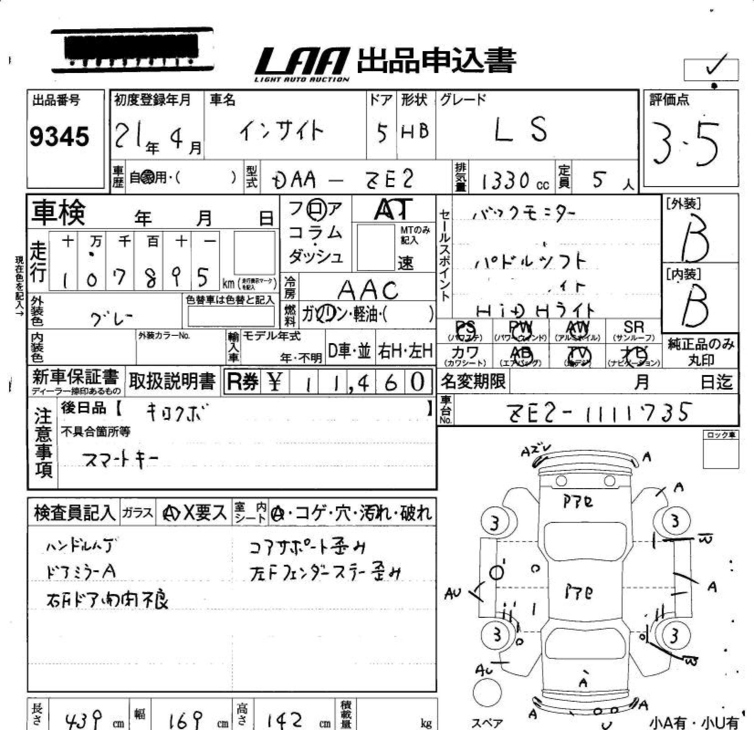 HONDA INSIGHT - лот 9345