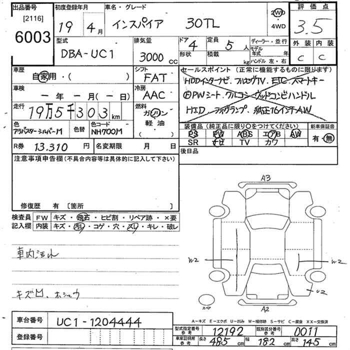 HONDA INSPIRE - лот 6003