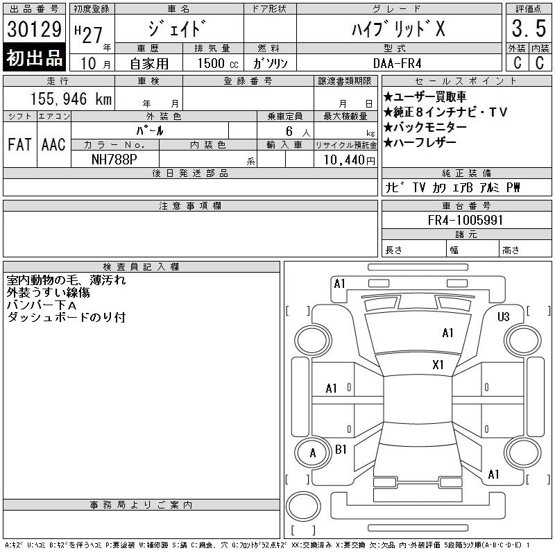 HONDA JADE hybrid X - лот 30129