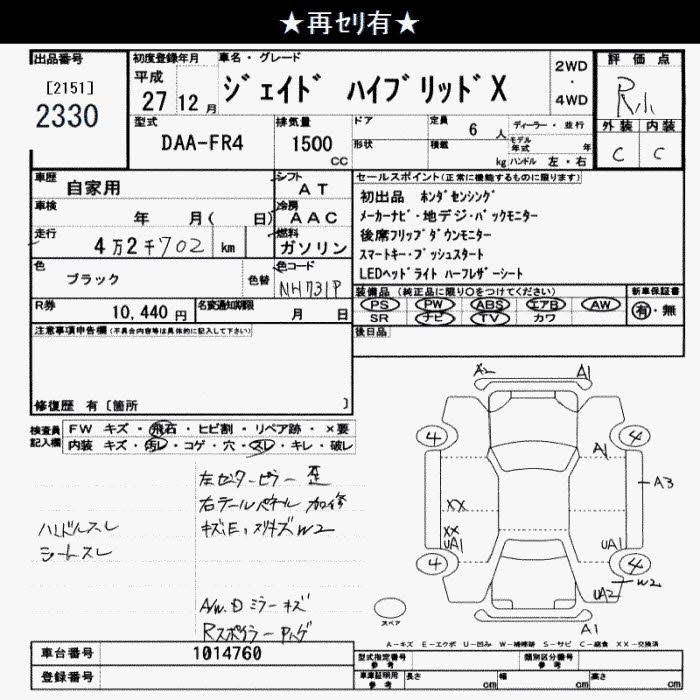 HONDA JADE hybrid X - лот 2330