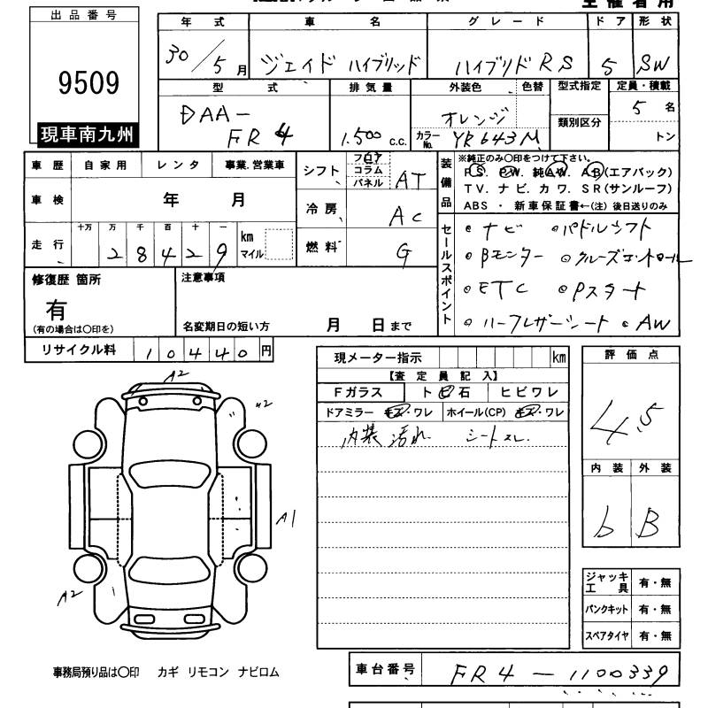 HONDA JADE hybrid RS - лот 9509