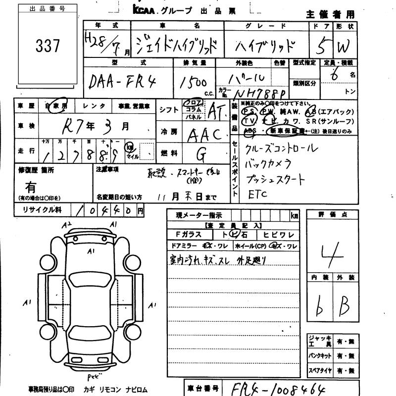 HONDA JADE - лот 337