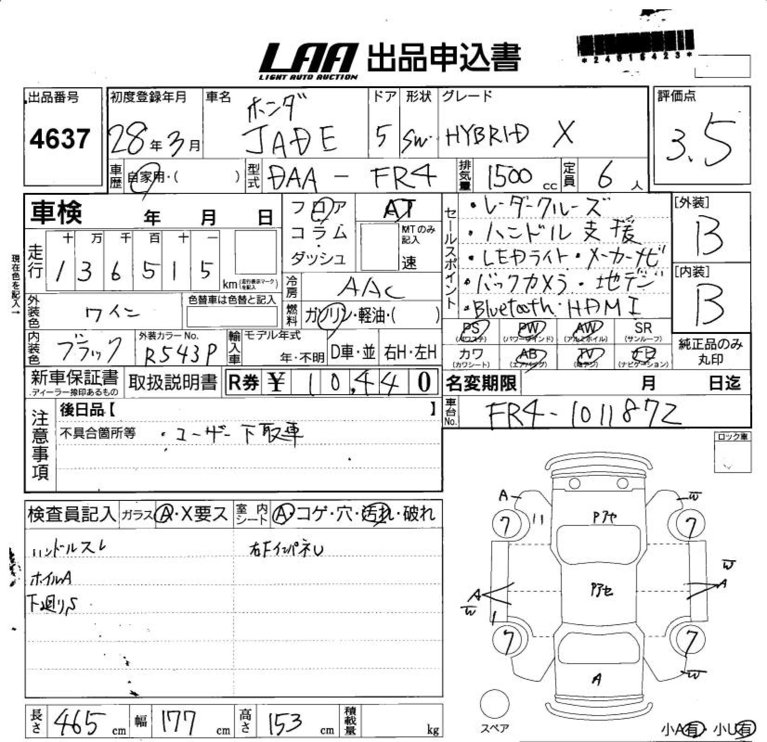 Все аукционы HONDA JADE