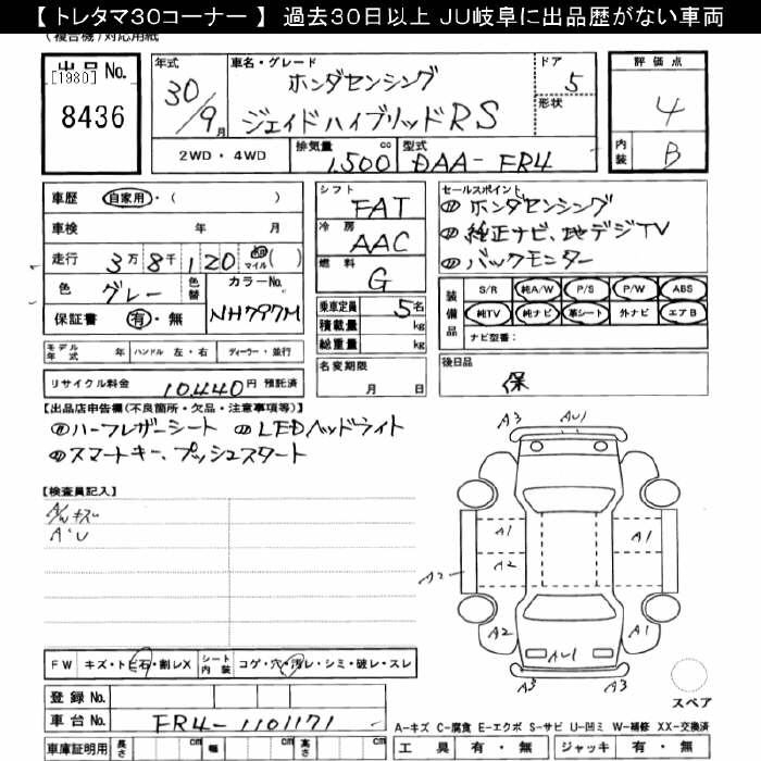 HONDA JADE HYBRID RS HONDA SENSING - лот 8436