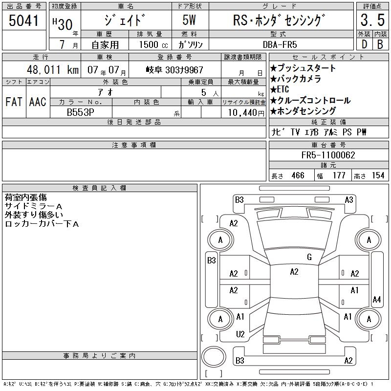 HONDA JADE RS* HONDA SENSING - лот 5041