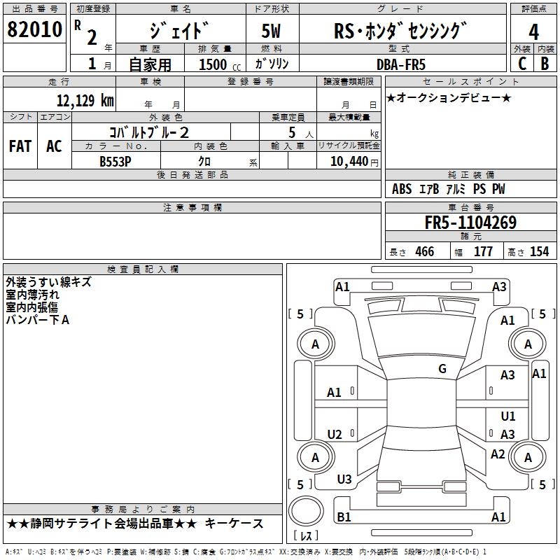 HONDA JADE RS* HONDA SENSING - лот 82010